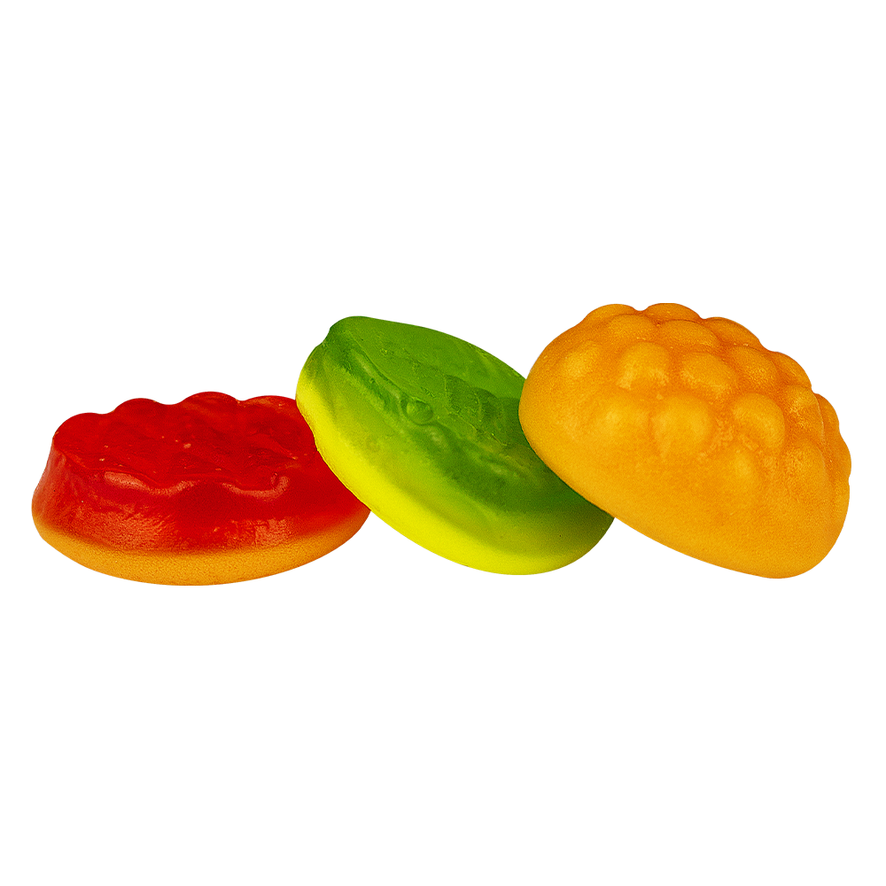 xarope de maltose, açúcar, gelatina bovina, óleo vegetal não hidrogenado de palma, acidulante ácido cítrico, regulador de acidez ácido
