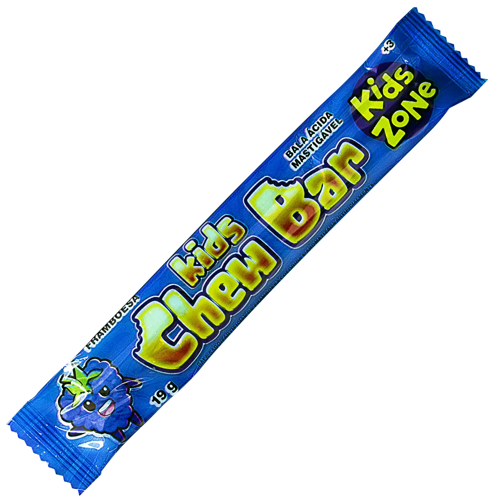 Sabor Framboesa: Xarope de Glicose, Açúcar, Dextrose, óleo de palma, Amido de milho, Proteína de soja, Acidulante Ácido cítrico, emulsificantes Mono e diglicerídeo de ácidos graxos e lecitina de soja, Aromatizante artificial e corante artificial azul brilhante FCF.