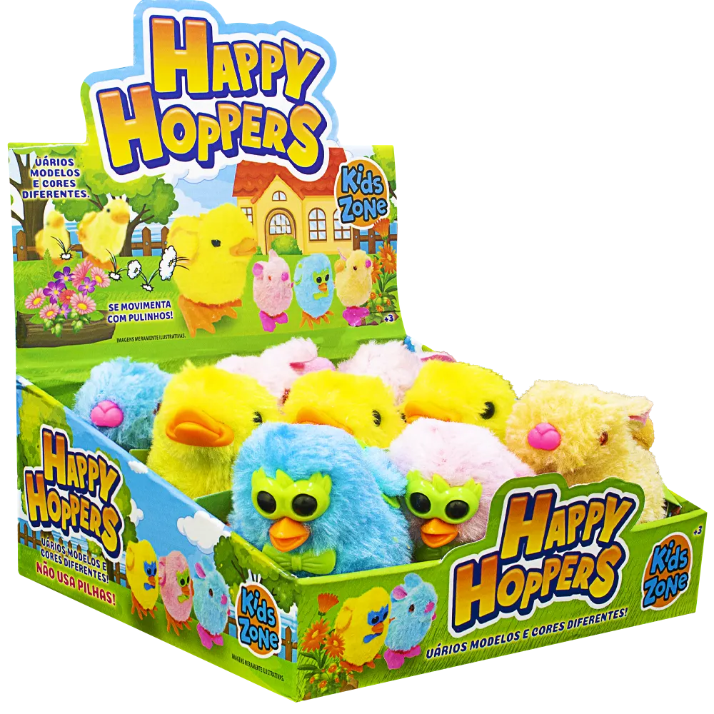 Mode de usar: dê corda no seu Happy Hopper e coloque-o sobre uma superficie limpa e plana.