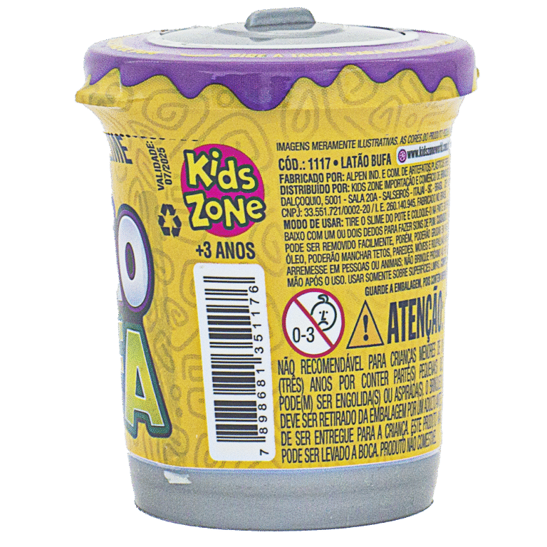 No display contém: 24 Potes com 80g de Massa Slime em cada. Inmetro: 009 247/2019