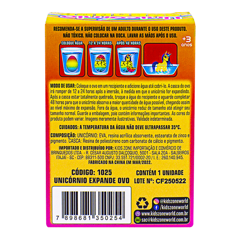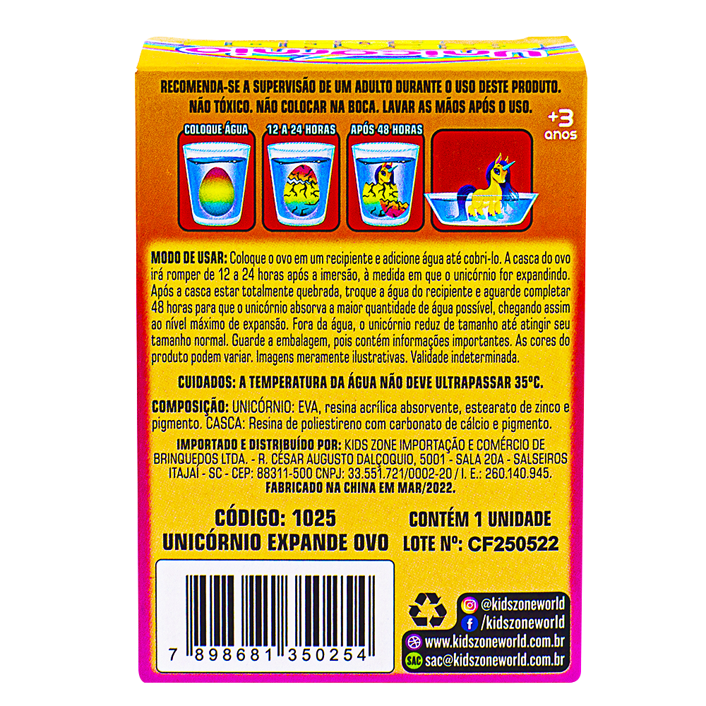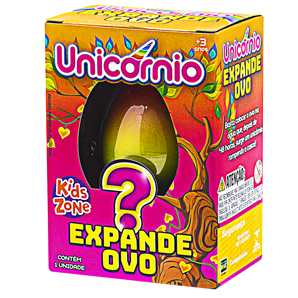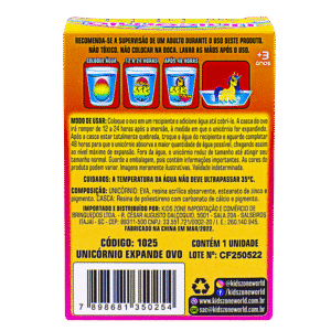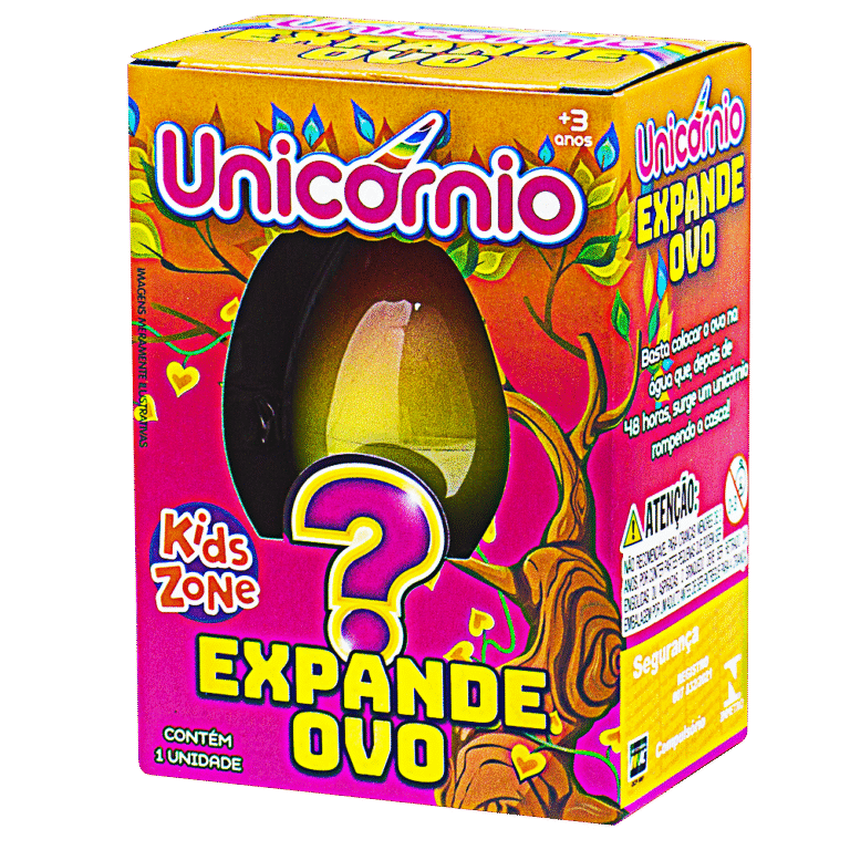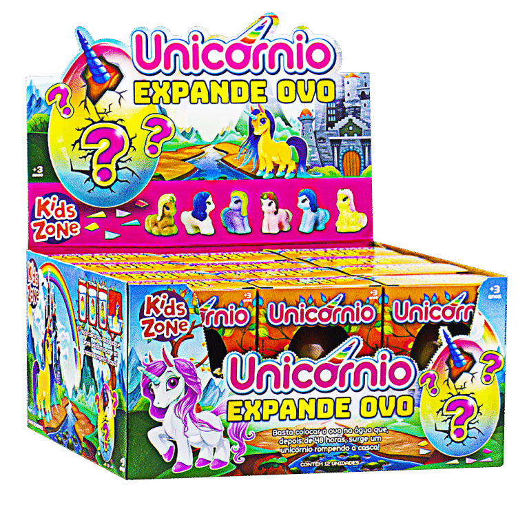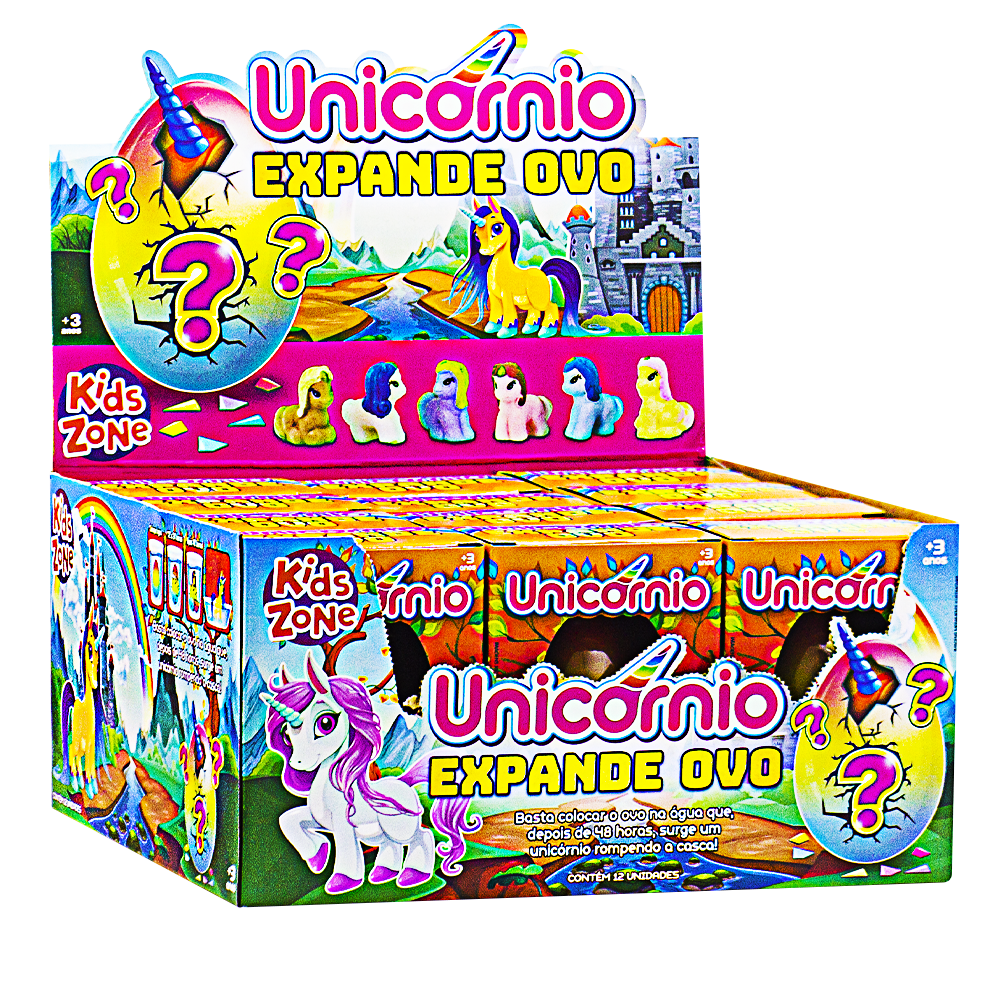 Basta colocar o ovo na água e depois de 48 horas, surge um unicornio rompendo a casca. 3+ No display contém 12 unidades