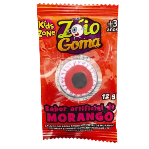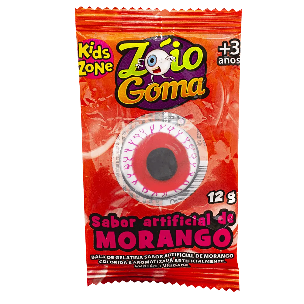 Morango: Xarope de glucose, açúcar, gelificante, gelatina, amido modificado, acidulante ácido citrico, aromatizante, óleo vegetal de palma, glaceante cera de carnaúba, corante artificial vermelho 40.